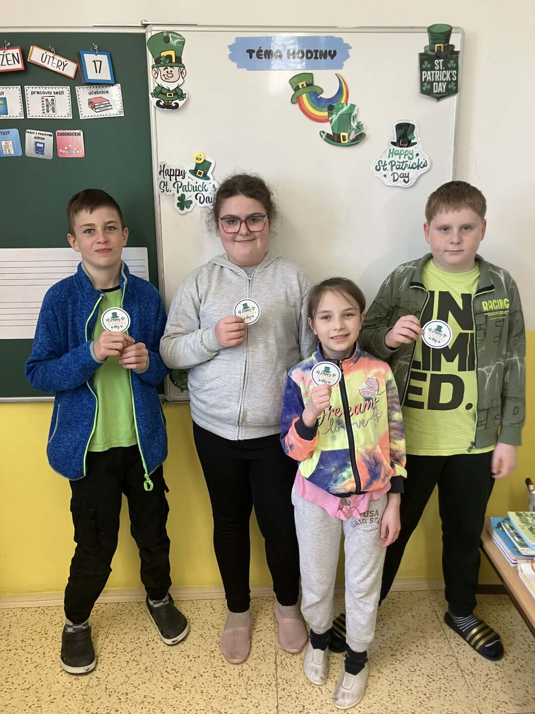 V naší třídě bylo najednou všechno zelené – slavili jsme Den svatého Patrika! A ne, jen tak – zapojili jsme ho do skoro všech předmětů. V češtině jsme zjistili, kdo vlastně svatý Patrik byl, a poznávali jeho symboly. Vyjmenovaná slova jsme si procvičili trochu netradičně – s tematickou omalovánkou. V matematice na nás čekaly příklady schované v třílístcích a v literatuře jsme se rozběhli po třídě při „běhačce“, kde jsme hledali informace a trénovali čtení s porozuměním. Nechyběla ani angličtina – křížovka a poslech nás přenesly přímo do Irska. Učení nás bavilo, bylo hravé a jiné než obvykle – a přesně takové dny máme nejraději.
