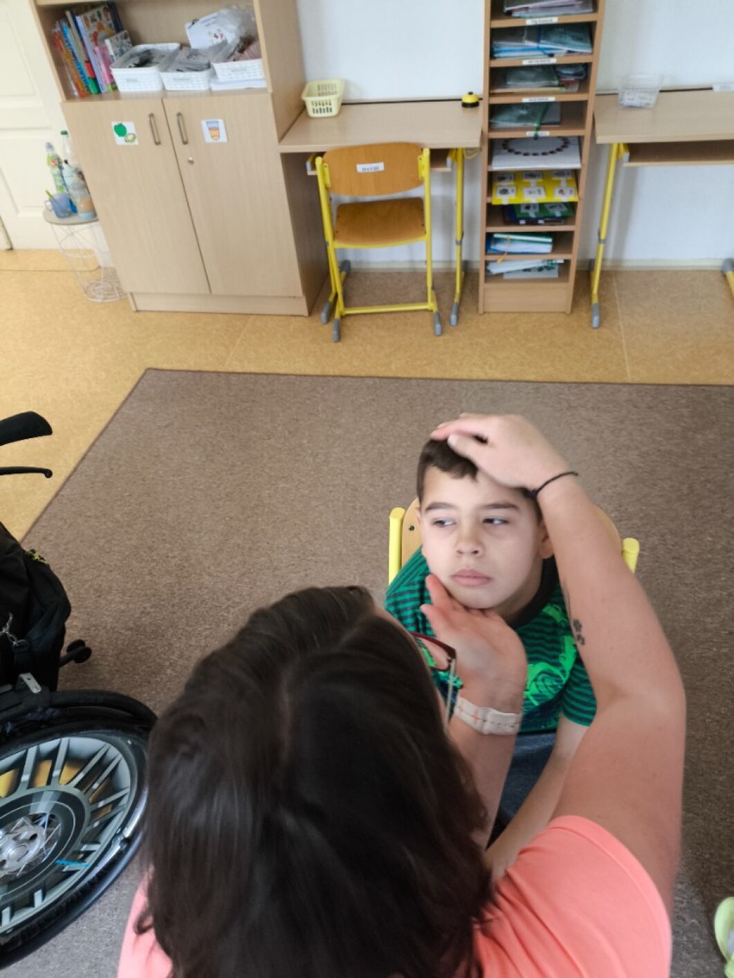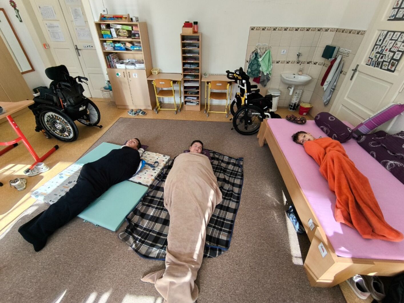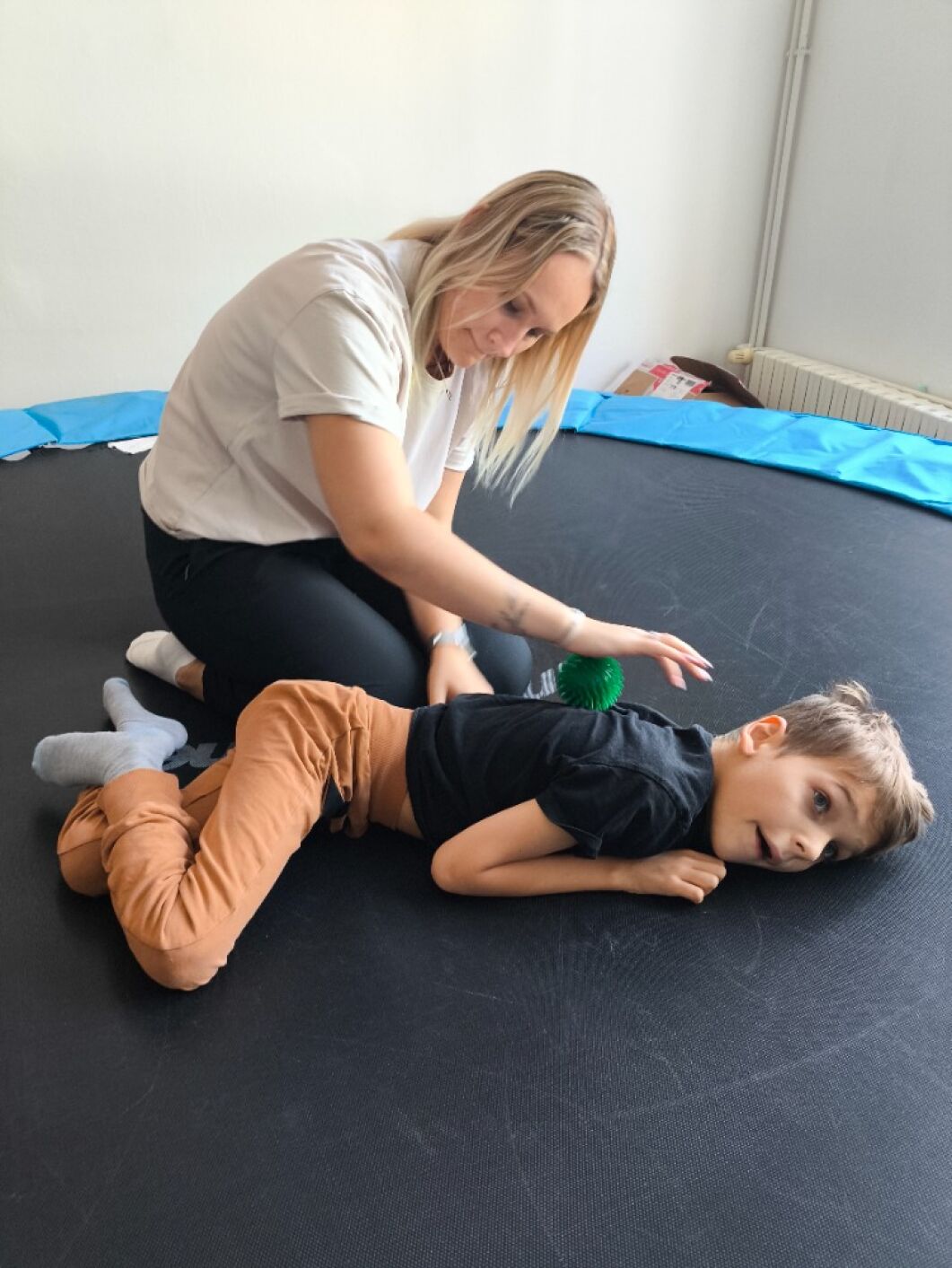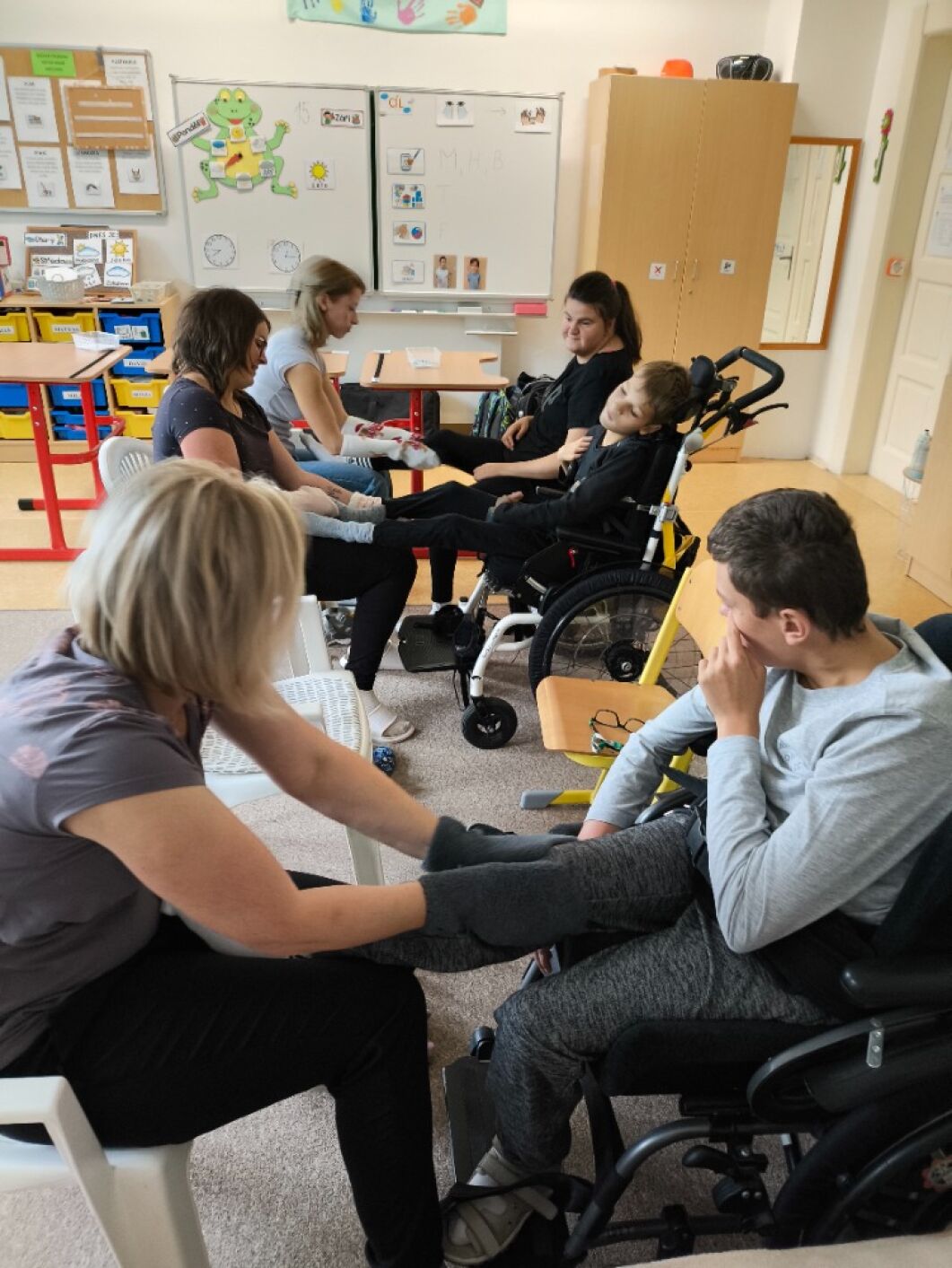 Ve třídě I. SP základní školy speciální je součástí výuky smyslové a zdravotní tělesné výchovy koncept bazální stimulace. Díky němu žáci vnímají a uvědomují si vlastní tělo, jeho nejmenší detaily, části, jak fungují. Pomocí různých technik, masáží (zklidňujících a aktivizujících) dochází k očekávanému chování. Dotyk, vibrace a tlak na jednotlivé části těla pomocí deky, vibračních pomůcek, rukou a měkkých ponožek žáci zažívají velmi příjemné vjemy - pocit jistoty, spokojenosti a celkové psychické pohody. A to je náš cíl!