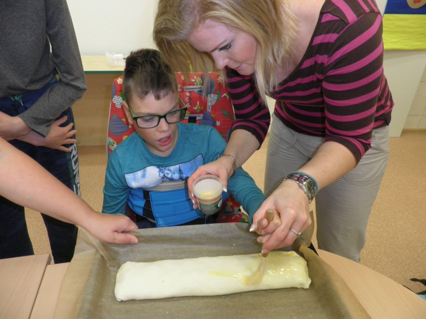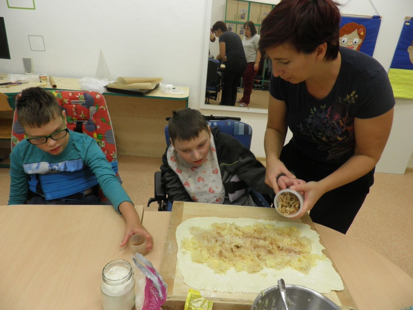 Dnes žáci třídy I. B po delší době se svými pedagogy opět připravovali něco dobrého k podzimnímu sychravému počasí. Dnešním tématem byl jablkový a hruškový závin. Všichni se moc snažili a v rámci svých možností pomáhali s očištěním ovoce a samotnou přípravou štrúdlu. Ten se povedl a zítra už se všichni těší na svačinu.