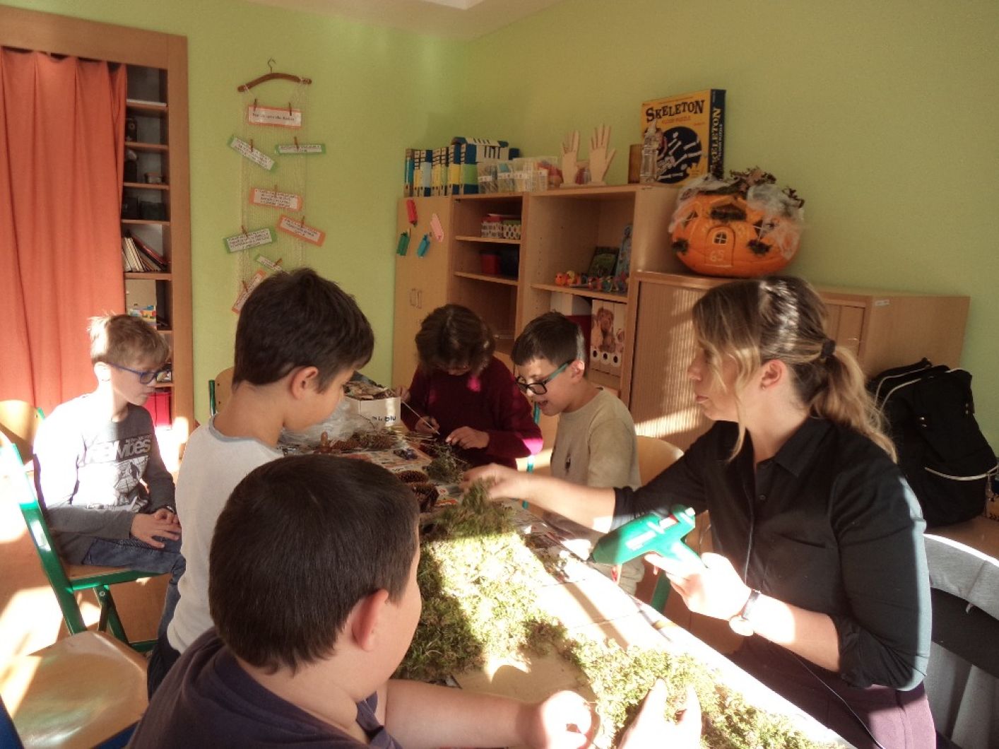 O pracovním vyučování ve třídě to pěkně žilo. Vyráběli jsme z různého přírodního materiálu dýňový domeček pro lesního skřítka a jeho zvířátka. Všichni jsme se do práce pilně a s nadšením zapojili. Z výrobku máme velkou radost.