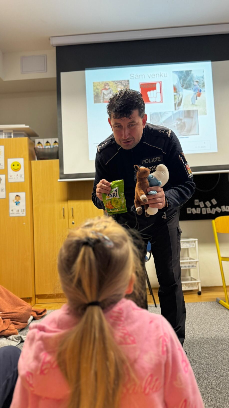 Dne 11.11. u nás ve škole proběhl preventivní program s názvem Bezpečně do školy, který si pro žáky připravil preventista Policie České republiky.