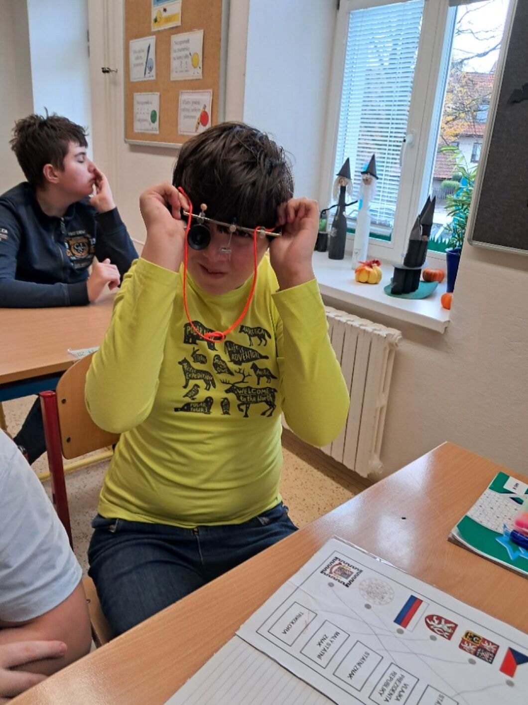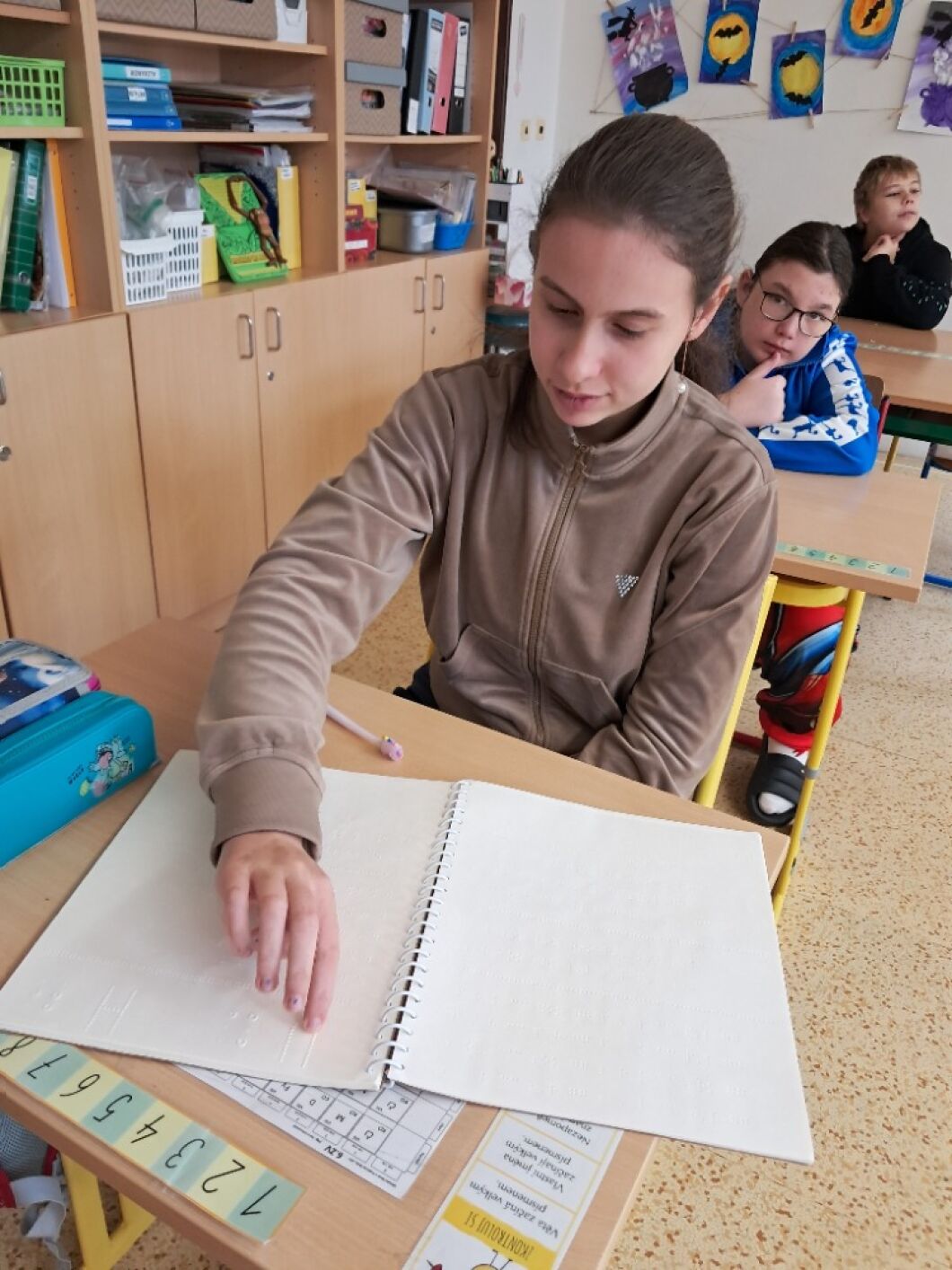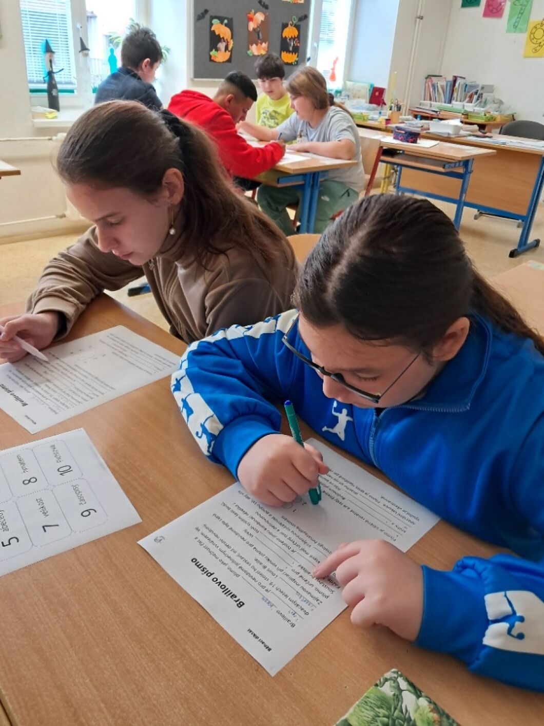 13. listopadu si připomínáme, že můžeme svět vnímat různými způsoby. Žáci VIII. a VII. třídy si v hodině občanské výchovy vyzkoušeli, jak obtížné je se pohybovat ve známém prostředí, když najednou okolní svět nevidíme. Na příběhu kamarádů ze školy Rozárky, Dorotky a nevidomého Matěje si přiblížili život nevidomých. Seznámili se s Braillovým písmem – jedinečným vynálezem pro čtení. Sami pomocí soustavy šesti teček luštili slova a věty. Prohlédli si i jiné pomůcky, které usnadňují život nevidomým. Za ně děkujeme panu asistentovi Kubovi. Ve společné hodině se žáci naučili, že přátelství nezná žádné překážky.