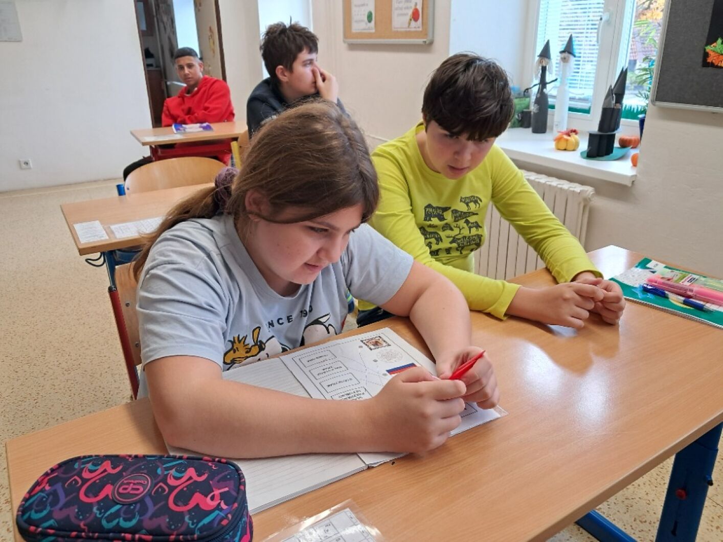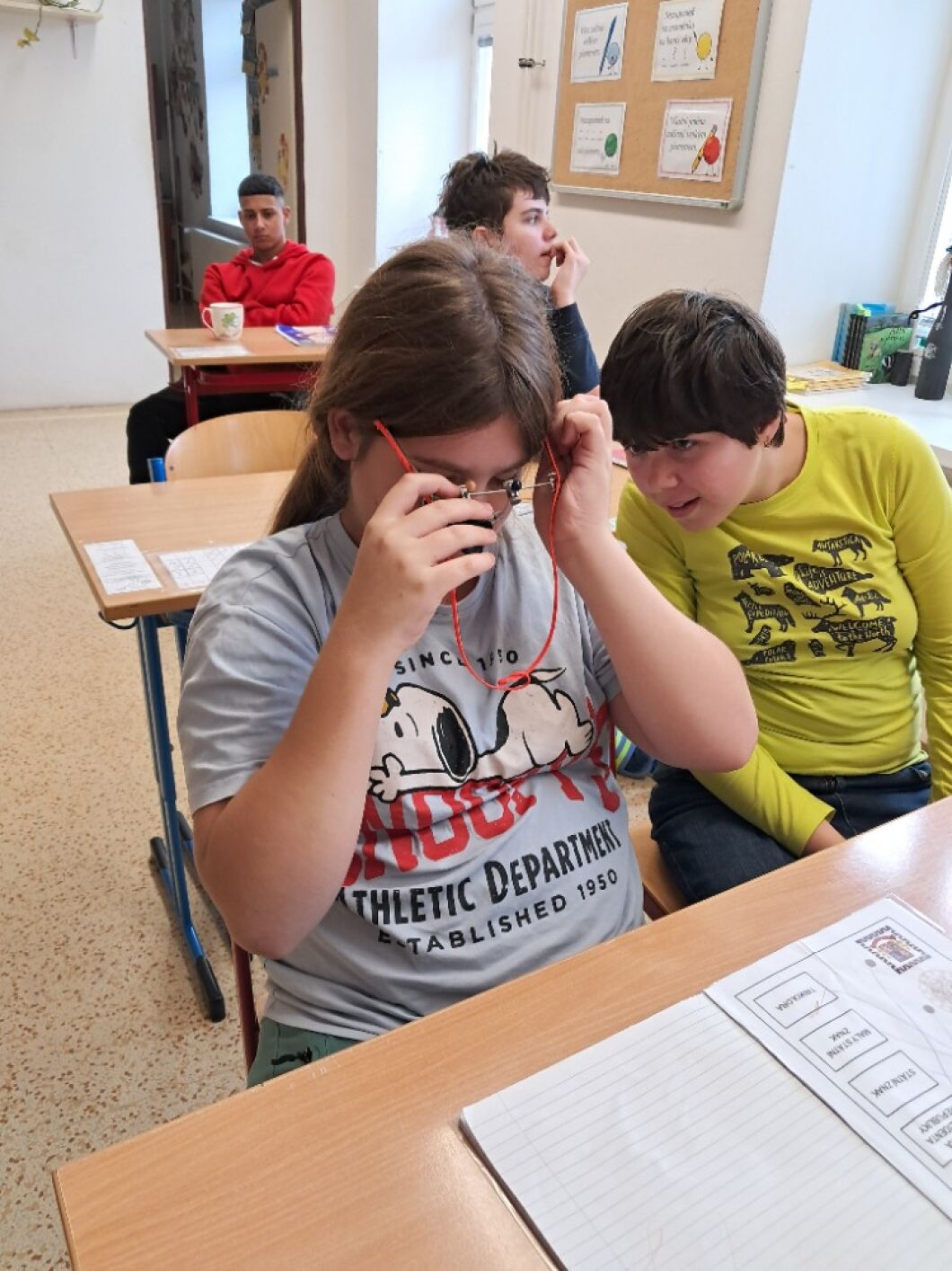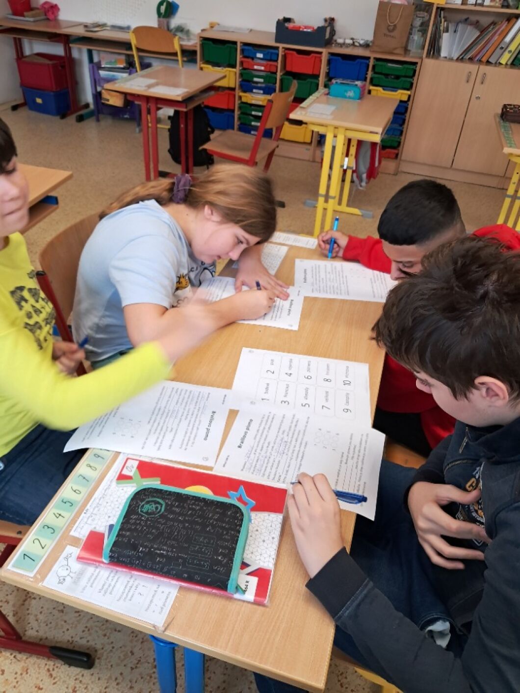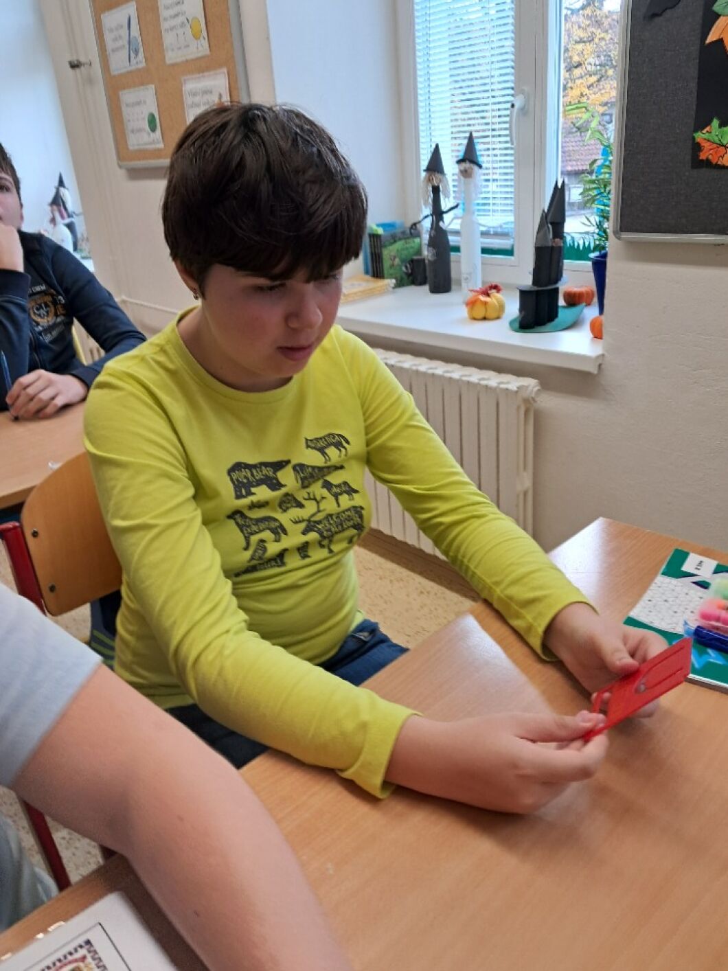 13. listopadu si připomínáme, že můžeme svět vnímat různými způsoby. Žáci VIII. a VII. třídy si v hodině občanské výchovy vyzkoušeli, jak obtížné je se pohybovat ve známém prostředí, když najednou okolní svět nevidíme. Na příběhu kamarádů ze školy Rozárky, Dorotky a nevidomého Matěje si přiblížili život nevidomých. Seznámili se s Braillovým písmem – jedinečným vynálezem pro čtení. Sami pomocí soustavy šesti teček luštili slova a věty. Prohlédli si i jiné pomůcky, které usnadňují život nevidomým. Za ně děkujeme panu asistentovi Kubovi. Ve společné hodině se žáci naučili, že přátelství nezná žádné překážky.